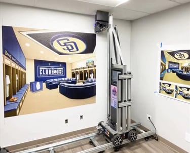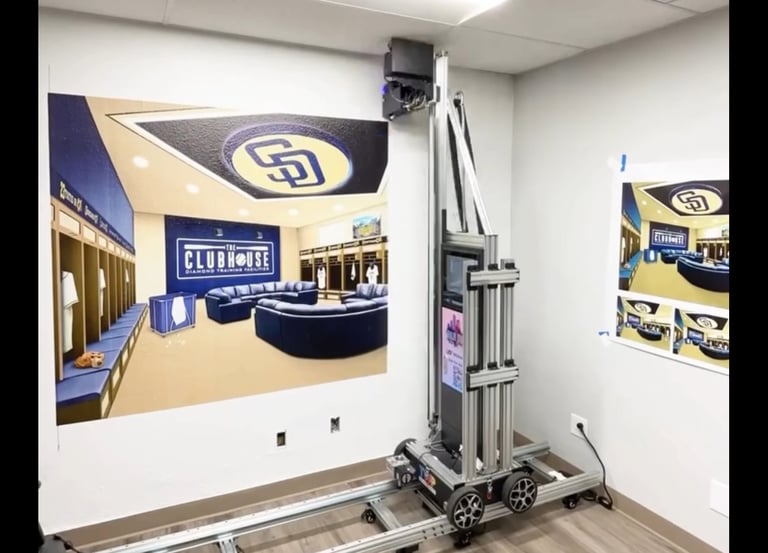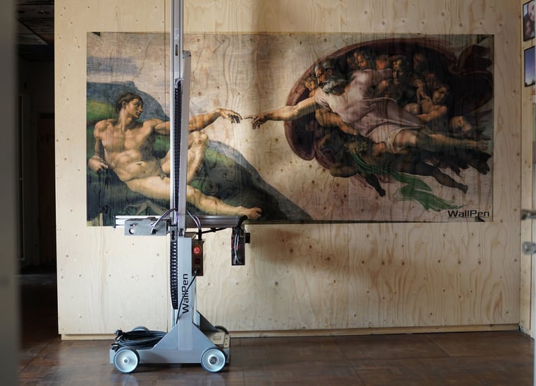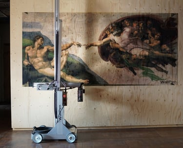 Our wall printer works on many surfaces including plaster, drywall, concrete, wood, glass, metal, and even tiles. As long as the wall is smooth and clean, we can print directly on it.